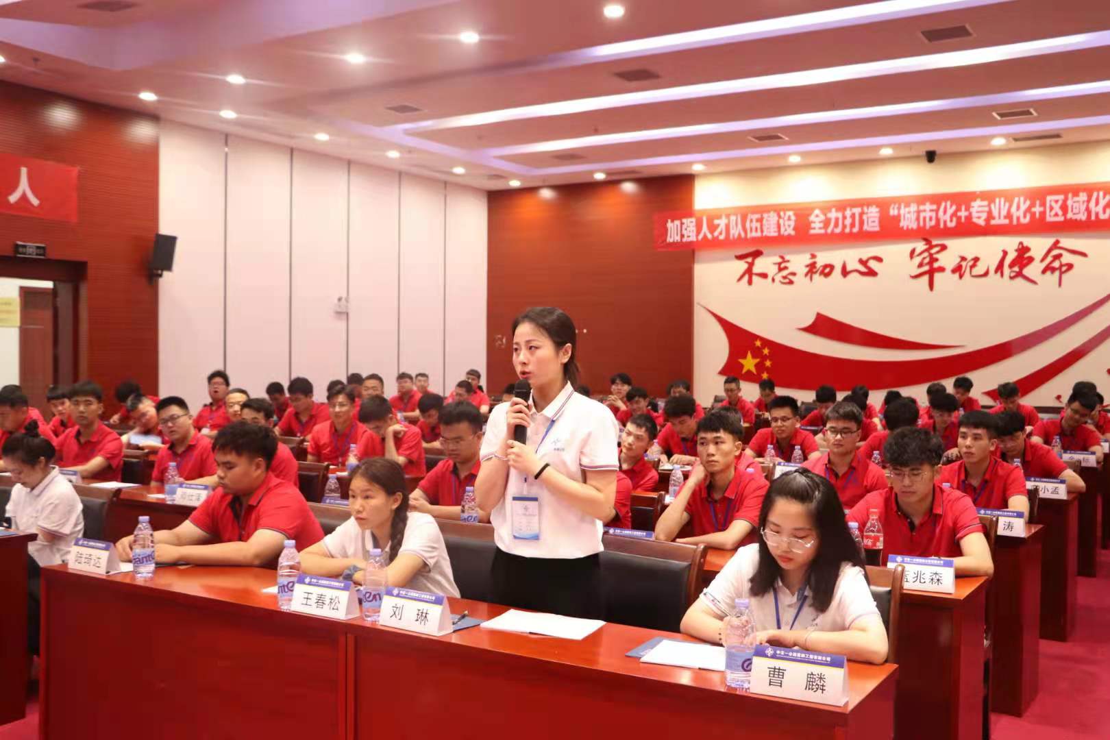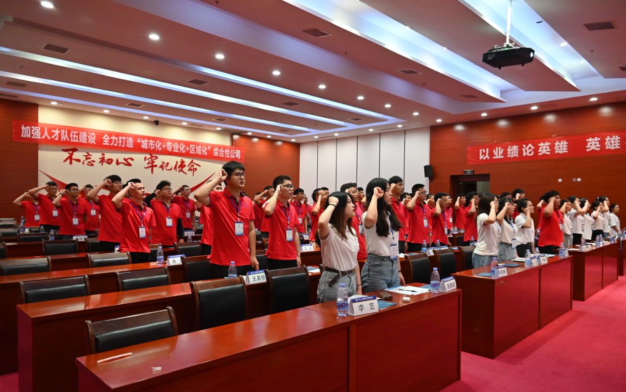 在鏗鏘有力的誓言聲中,新員工投入中交藍(lán)的懷抱。