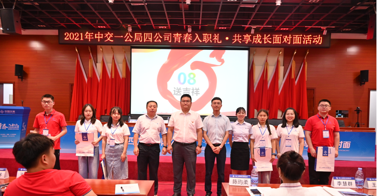 送吉祥環(huán)節(jié),4位嘉賓為新員工送上了公司團(tuán)委精心定制的中交logo U盤。